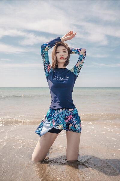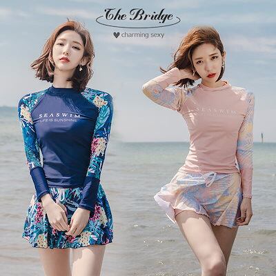 水着 セットアップ レディース 日焼け対策 保守 お腹カバー 長袖 体型カバー レディース 学生 女性 スカート パンツ セパレート 韓国 ファション かわいい おしゃれ ピンク ブルー ネイビー 水