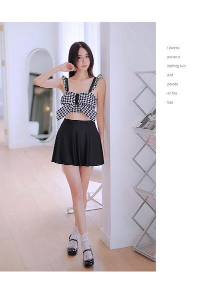 水着通販 レディース タンキニ セパレート水着 ビキニ 3点セット 千鳥 可愛い 水着 スカート 見せパン ワイヤレス パッド付き スイムウェア 韓国 千鳥柄 小胸 着痩せ お尻カバー 可愛い水着 レ