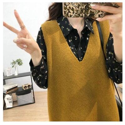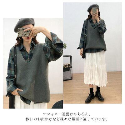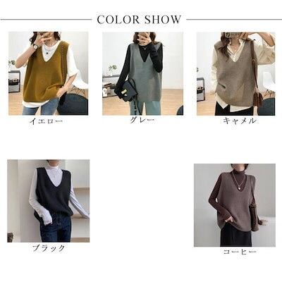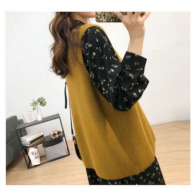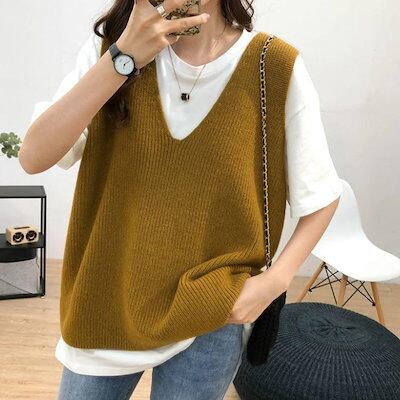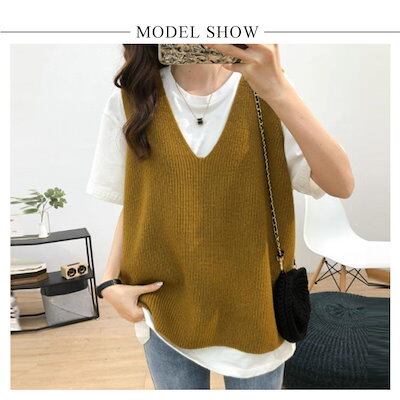 万能流行感ニットベストレディーストップス重ね着おしゃれ秋冬無地シンプルゆったりセーターカジュアルVネックニット可愛い
