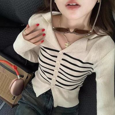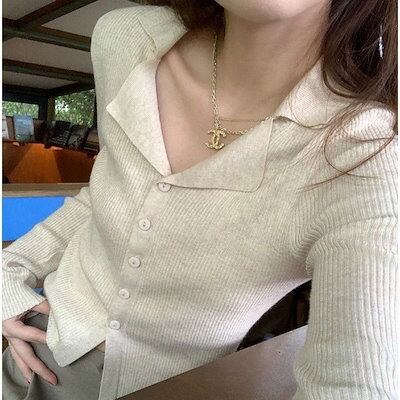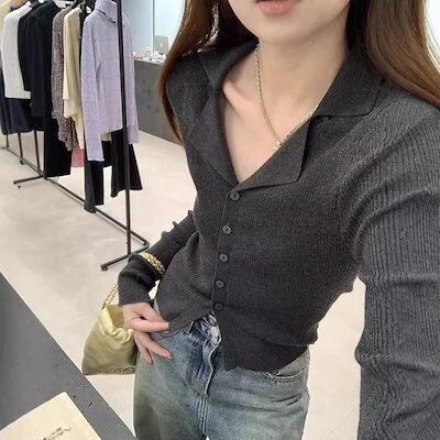 ニットカーディガン襟開きボタンニットカーディガンレディース2025秋の作ボトム長袖セーター