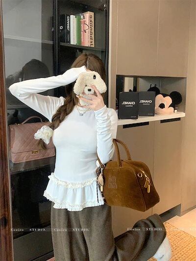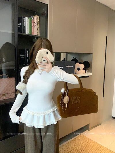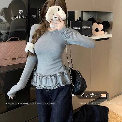 人气作韓国ファッション作インナートップスTシャツ長袖ブラウススウェットおしゃれかわいい長袖tシャツレディース厚保温トップス