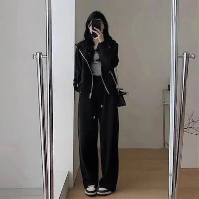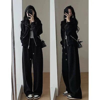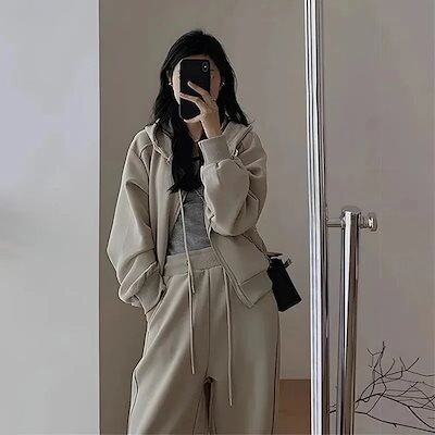 2点セットトップス+ズボン大きいサイズパーカー150kgスウェットアップ長袖フード付きアウター無地スウェットパンツ韓国ファッションレディーストレーニ