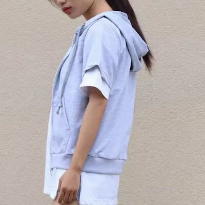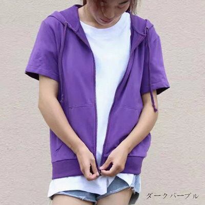 パーカー 薄手 半袖 ジップパーカー レディース 春夏 半袖パーカー 前開き 大きいサイズ ジップアップ トップス アウター ショート アウター 羽織もの 冷房対策 薄手アウター おしゃれ きれいめ