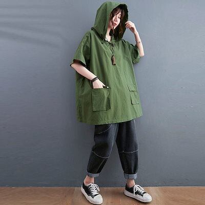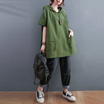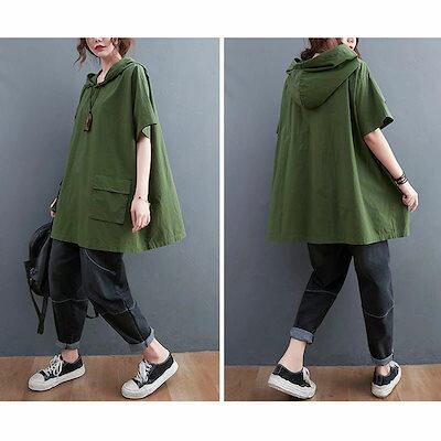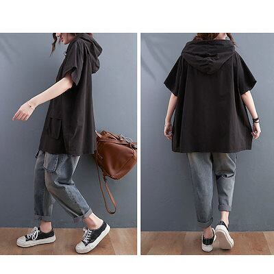 パーカー 半袖 レディース トップス カットソー 夏 tシャツ 無地 プルオーバー パーカー 薄手 ゆったり 大きいサイズ Tシャツ 半そで カジュアル プルオーバーパーカー サマーパーカー フード付