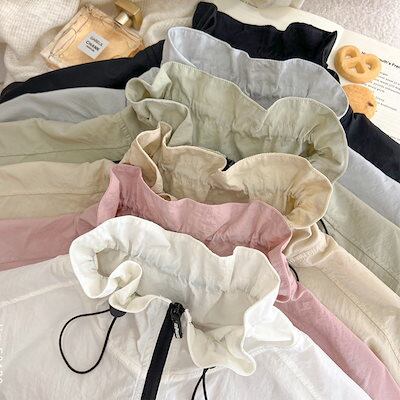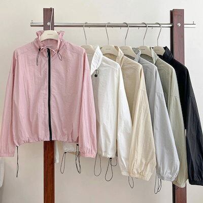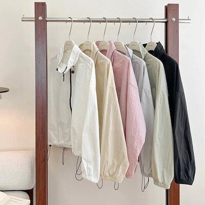 UVカット パーカー フードなし レディース ブルゾン ジャケット 薄手 夏用 カーディガン 羽織もの トップス 長袖 UVカット UPF50+ アウター ショート丈 春 夏 軽量 涼しい 体型カバー