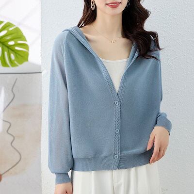 カーディガン 薄手 レディース フード付き サマーニット トップス ショート丈 パーカー uvカット パーカー 秋 ニットカーディガン コーディガン 羽織 羽織もの 上着 冷房対策 UV アウター