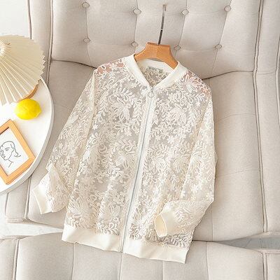 カーディガン レディース 春 夏 uvカット パーカー シアー ブルゾン 薄手 フードなし トップス 長袖 レース 羽織り 羽織もの アウター ライトアウター ドル丈 コーディガン 刺繍 花柄 コーデ