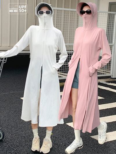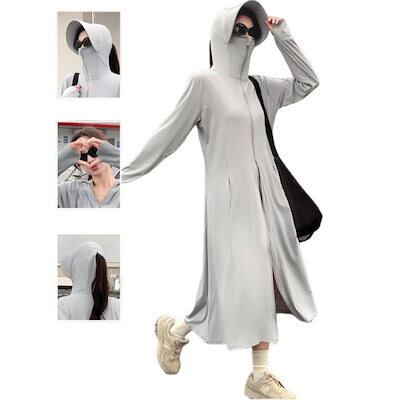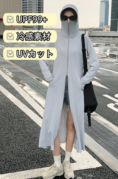 UVカット パーカー レディース ロング ラッシュガード フード付き アウター 長袖 ジップアップ 薄手 日焼け止め 夏用 軽量 吸汗速乾 冷感 涼しい スポーツ 通勤 自転車 アウトドア 紫外線対策