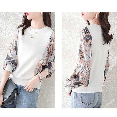 パーカー レディース トップス ブラウス 新作 長袖Tシャツ 春秋 レイヤード風 品質いいな新品 クルーネック プルオーバー シルエット ゆったり カジュアル