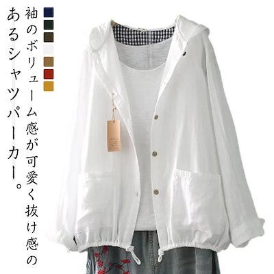 シャツ パーカー レディース 春 夏 コットン シャツ ライトアウター 軽アウター パーカー ジャケット カーディガン フード付き 長袖 羽織り 紫外線対策 日焼け防止 森ガール ゆったり 大きいサイ
