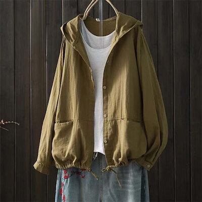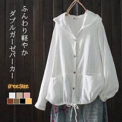 カーディガン パーカー レディース ダブルガーゼ カーデ フード付き 長袖 春 夏 おしゃれ ポケット 無地 薄手 上品 トップス サマーカーディガン 大人 ゆったり シンプル 綿 コットン プルオー