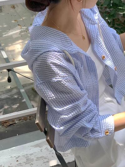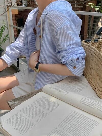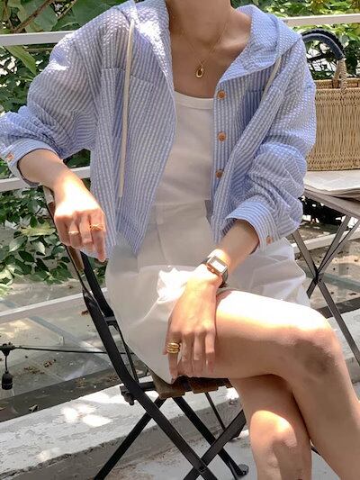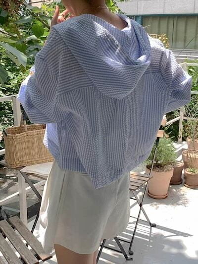 シャツブラウス レディース 夏 ストライプシャツ ストライプ 長袖 カーディガン きれいめ オフィスカジュアル ボーダー オフィス フード 体型カバー パーカー トップス おしゃれ UVカット ミドル