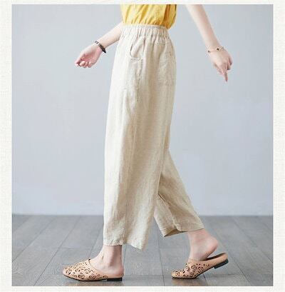 ボトムス イージーパンツ サルエルパンツ ワイドパンツ ガウチョパンツ 綿麻調 九分丈 レディース カジュアル ポケット付き ゆったり 大きいサイズ 春 夏 20代 30代 40代 50代 オシャレ