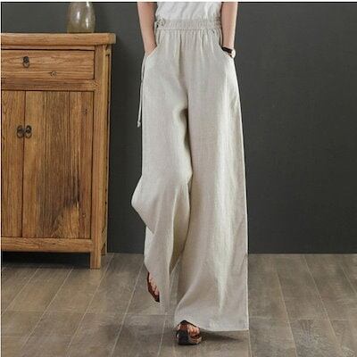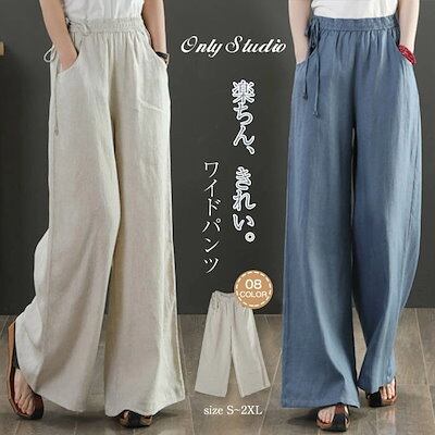 ワイドパンツ レディース ガウチョパンツ ロング パンツ 体型カバー 大きいサイズ ロング丈 ボトムズ 夏 着痩せ 無地 おしゃれ ゆったり コットンリネン混 綿麻調 春 夏 リラックス カジュアル