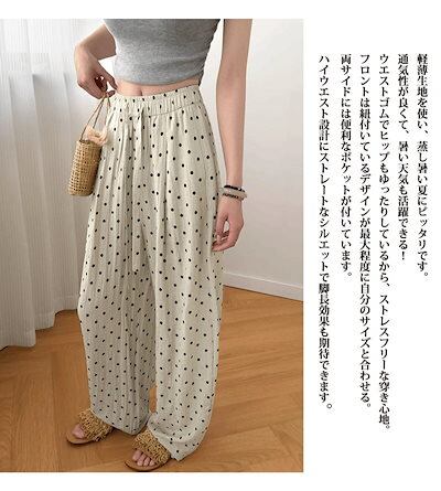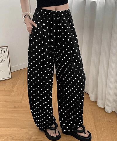 【2点で200OFF】カーブパンツ ドット柄 丸い バルーンパンツ ワイド レディース 大きいサイズ 春 夏 ワイドパンツ パンツ ウエストゴム リボン ロングパンツ 水玉 ボトムス