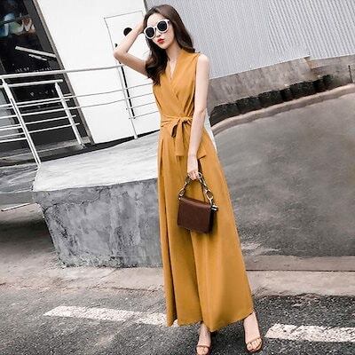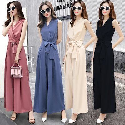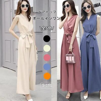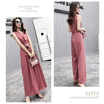 セットアップロンパースワイドパンツレディースネットレッド2025夏のファッションカジュアルv襟修身お姉さんの減齢ロンパーススーツ サロペット