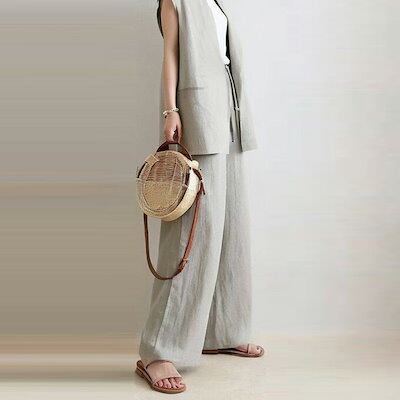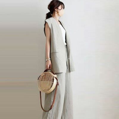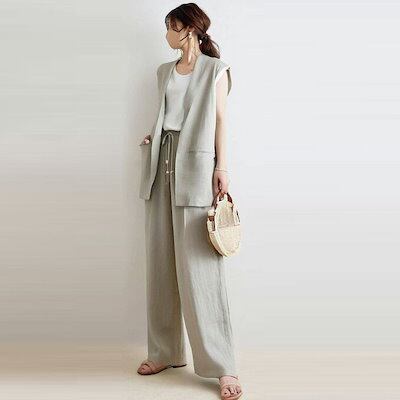 セットアップ テーラードジレ ベスト 羽織り ワイドパンツ 上下セット 無地 ゆったり カジュアル 通勤 オフィス キレイめ レディース 大人モード こなれ感 着回し おしゃれ 夏 夏服