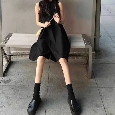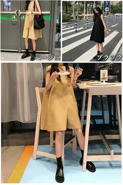 オールインワン サロペット パンツ レディース ノースリーブ ゆったり Vネック オーバーオール 無地 綿 ワイドパンツ サスペンダー 上品 お洒落 かっこいい 大人可愛い 春 夏