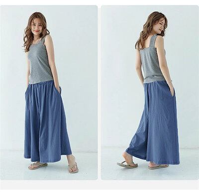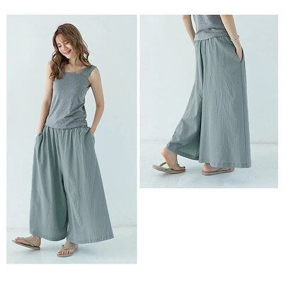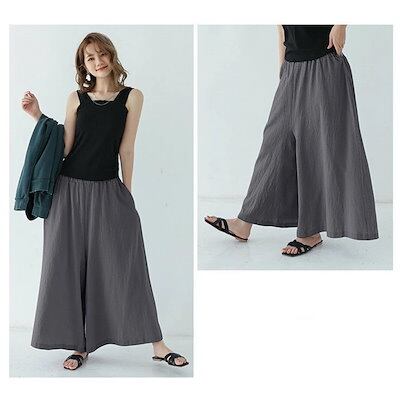 ワイドパンツ レディース ガウチョパンツ パンツ 体型カバー 大きいサイズ ロング丈 ボトムズ 春 夏 夏服 着痩せ 無地 おしゃれ ゆったり コットンリネン 綿麻 春 夏 リラックス カジュアル ウ