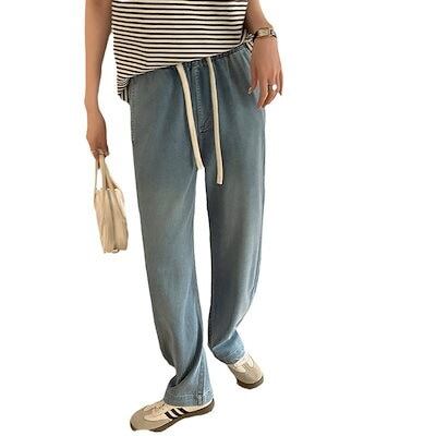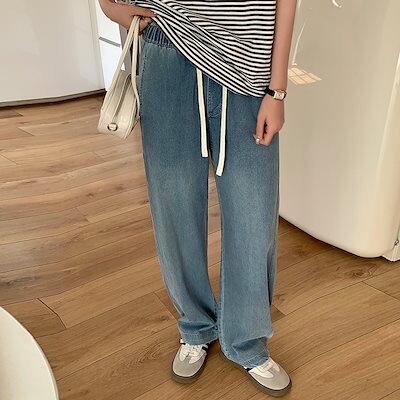 夏の新型の薄手のジーパンの女性のワイドレギンスのズボンは高腰の垂れ下がっている感じがします