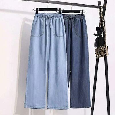 デニムパンツ 体型カバー 涼しい デニムワイドパンツ ひんやり レディース UVカット 接触冷感 夏用 ジーンズ ジーパン ボトム 薄手 ワイドパンツ ゆったり 接触冷感 ストレートパンツ 夏 大きい