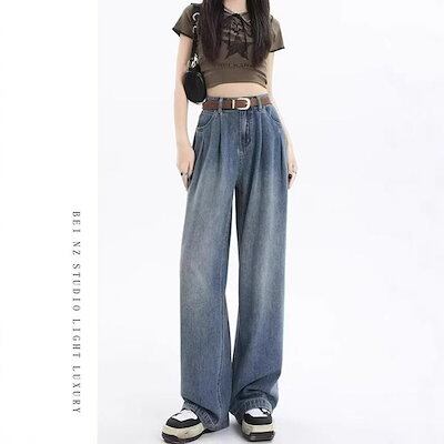 デニムワイドパンツ 夏 レディース デニムパンツ高級な質感 ジーパン ボトムス ストレートパンツ