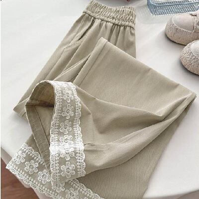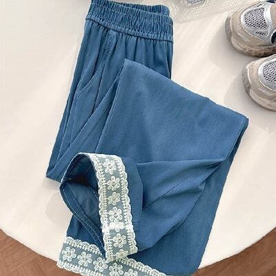 2025大人気ワイドパンツ レース デニム ストレート ロングパンツ 夏 レディース ウエストゴム ズボン ロングタイプ 伸縮性のあるウエスト パンツ 薄手 接触冷感 無地 スウェットパンツ