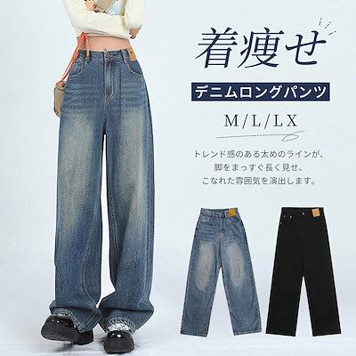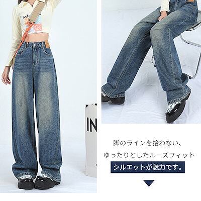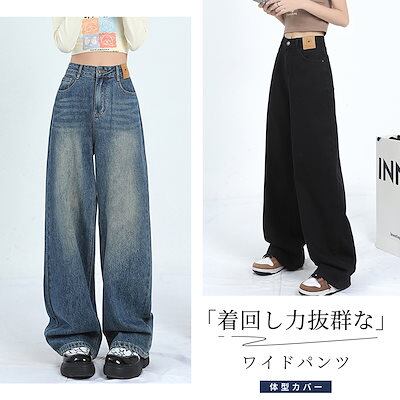 デニム レディース ロングパンツ - ワイドパンツ ハイウエスト ズボン ゆったり ジーパン カジュアル 大きいサイズ おしゃれ ストレート 美脚 ボトムス シンプル きれいめ 体型カバー 可愛い