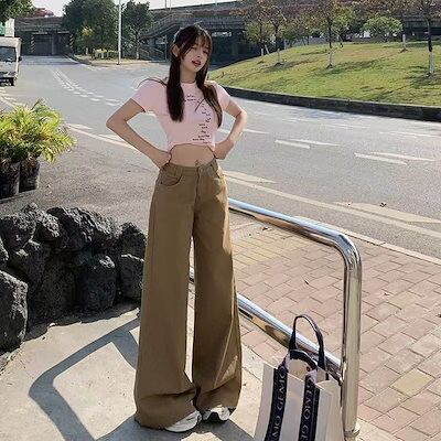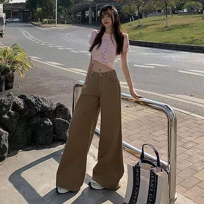 美ラードは春夏の新型アメリカンストレートのワイドパンツを着ています