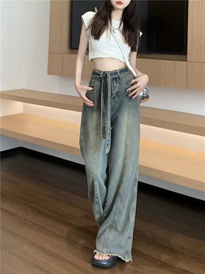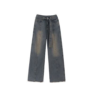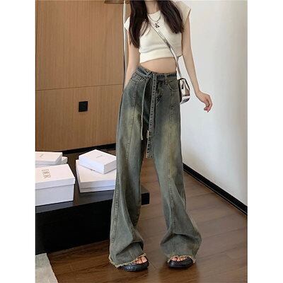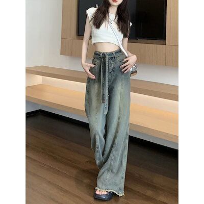デニムパンツ ジーンズ レディース 2025新作 ハイウエストルーズ生エッジパンツ デニムワイドパンツ