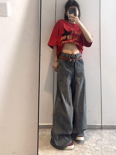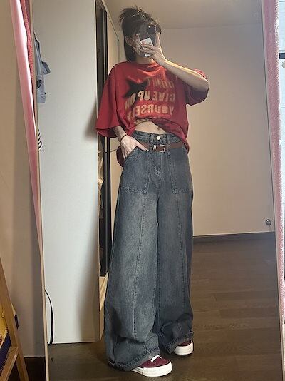 デニムパンツ ヴィンテージワイドレッグジーンズ女性2025新しいハイウエストルーズストレートジーンズズボン