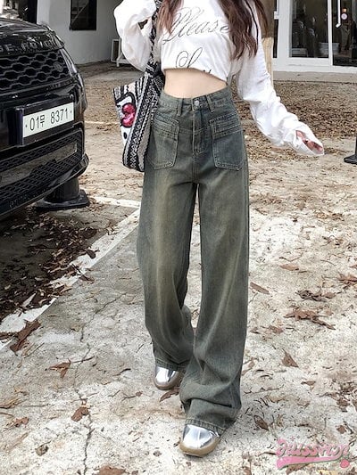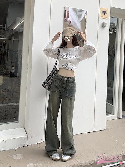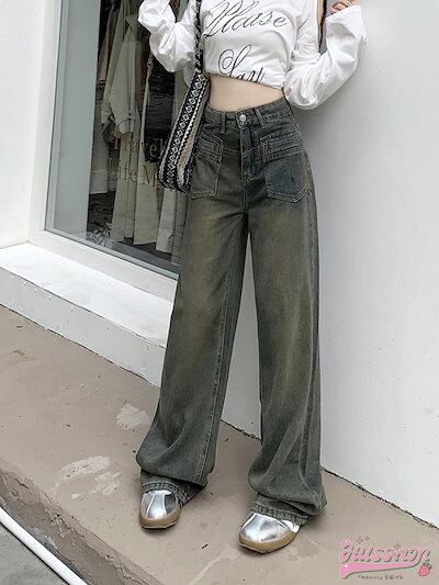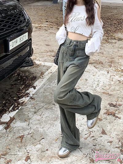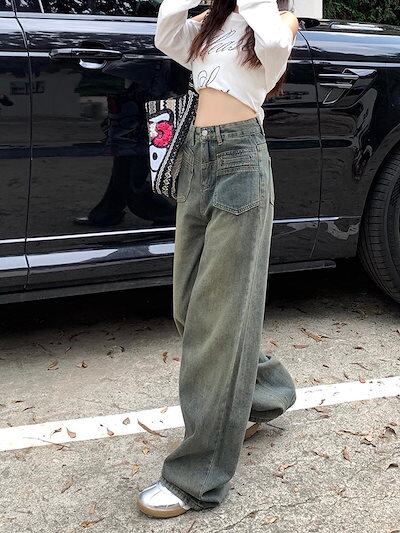 2025 春夏レトロジーンズ女性春秋脚長効果新作ハイウエストデニム 薄型デザインワイドパンツストレートドラッグズボン潮
