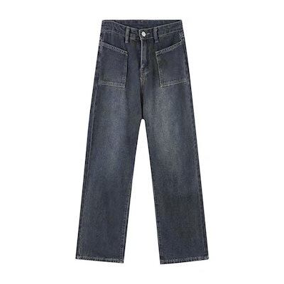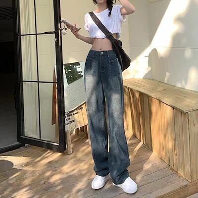 デニムパンツ ヴィンテージ ジーンズ レディース ゆったり ストレート ハイウエスト 薄手 夏秋 ワイドパンツ モップズボン 韓国