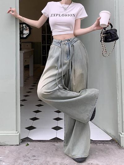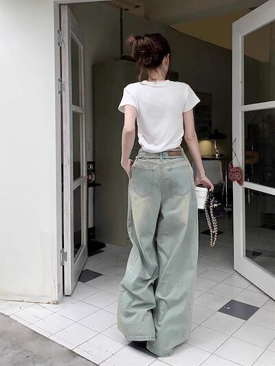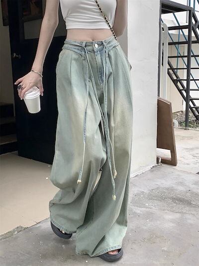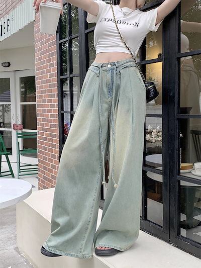 デニム激?れ人気商品 脚長効果!デニムパンツ かっこいい!スラックスパンツ ストレートジーンズ 春夏 レトロハイウエスト ゆったり ワイドパンツ