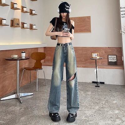 デニム激?れ人気商品 脚長効果!デニムパンツ かっこいい!スラックスパンツ ストレートジーンズ 春夏 アメリカンダメージ レトロ ゆったり ワイドパンツ