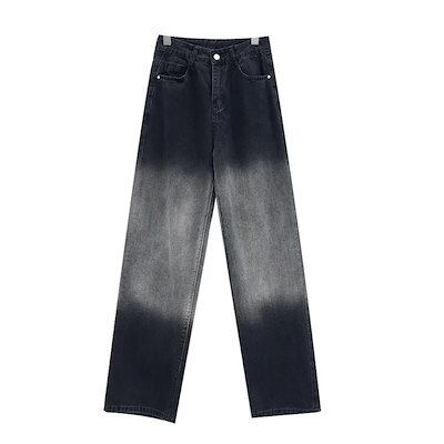 デニム激?れ人気商品 脚長効果!デニムパンツ かっこいい!スラックスパンツ ストレートジーンズ 春夏 ブラック insハイウエスト ゆったり ワイドパンツ