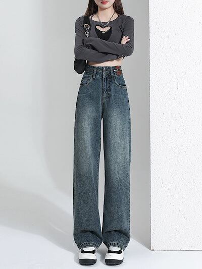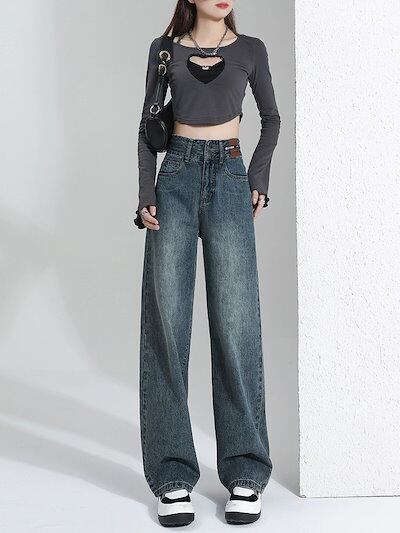 デニム激?れ人気商品 脚長効果!デニムパンツ かっこいい!スラックスパンツ ストレートジーンズ 春夏 ゆったり ワイドパンツ モップパンツ