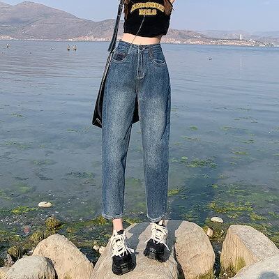 デニム激?れ人気商品 脚長効果!デニムパンツ かっこいい!スラックスパンツ ストレートジーンズ 春夏 ハイウエスト ゆったり ワイドパンツ