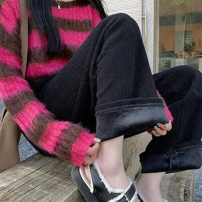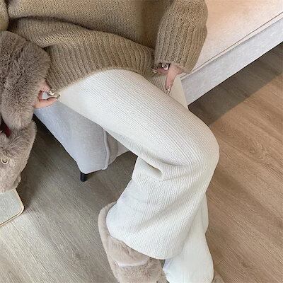 デニム2025 秋 冬 デニムパンツ ニットパンツ 麦の穂柄 シュニール 秋 冬 ハイウエスト ストレートパンツ ワイドパンツ レディース カジュアル トレーリングパンツ ズボン 韓国 大きいサイズ