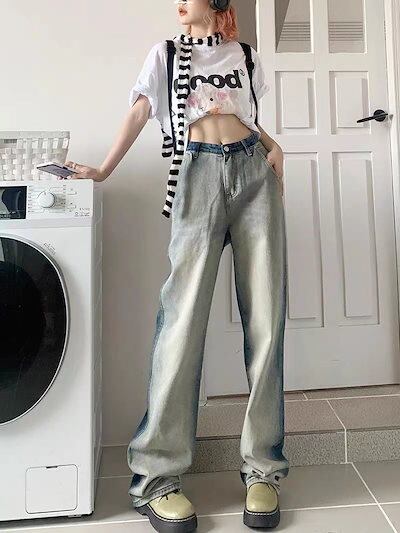 デニムレトロ ハイウエスト デニムパンツ ワイドパンツ おしゃれ スリム見え 流行りスラックスパンツ