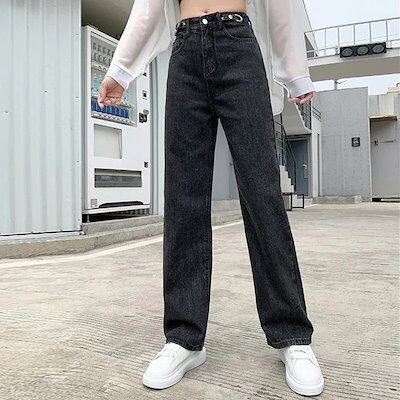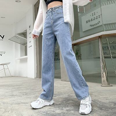 女性用ワイドレッグプチジーンズ ゆったりと多用途なフロアレングス調節可能なウエストゴムウエストストレートジーンズ