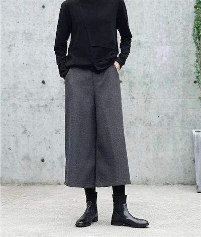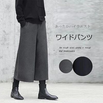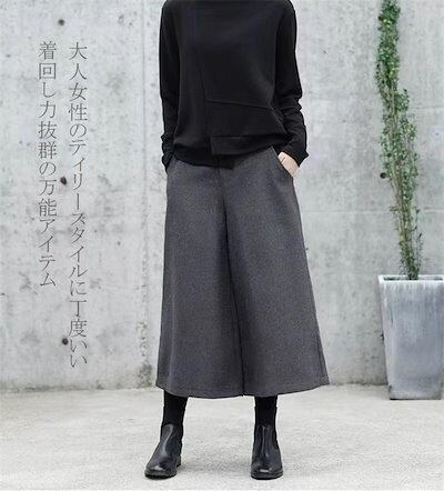 ワイドパンツ ウール調 レディース 冬 ゴム ゆったり パンツ ロングパンツ 秋冬 ガウチョパンツ ロング丈 大きいサイズ 九分丈 ガウチョ 微起毛 九分丈パンツ 長ズボン ポケット パンツ ワイド