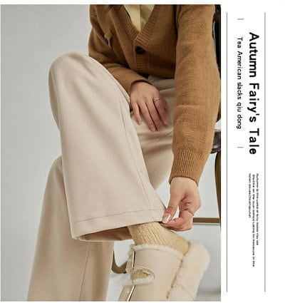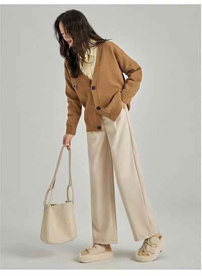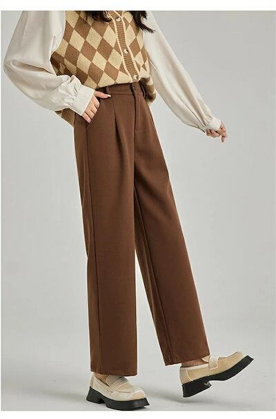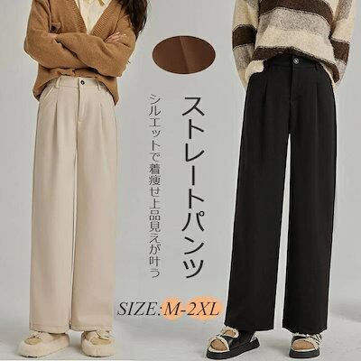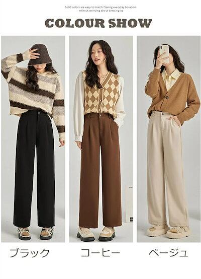 ストレートパンツ レディース 秋冬 ガウチョパンツ パンツ ロングパンツ ワイドパンツ 無地 ラシャ ウエストゴム ポケット付き ワイド ゆったり ボトムス ズボン 体型カバー ラシャパンツ 暖かい