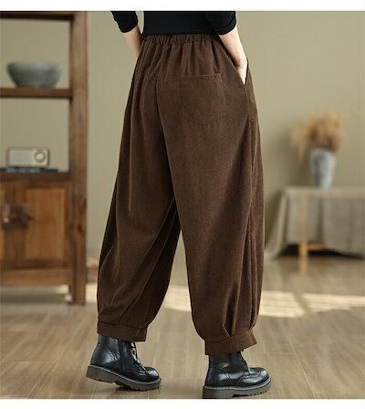 パンツ コーデュロイ レディース バルーンパンツ 秋冬 ワイドパンツ サーカスパンツ 春 ワイド ボトムス パンツ ハロンパンツ 大きいサイズ コクーン ウエストゴム ロングパンツ サルエルパンツ ポ