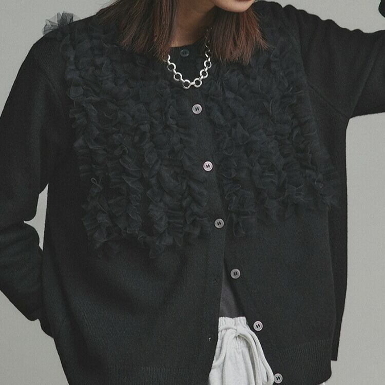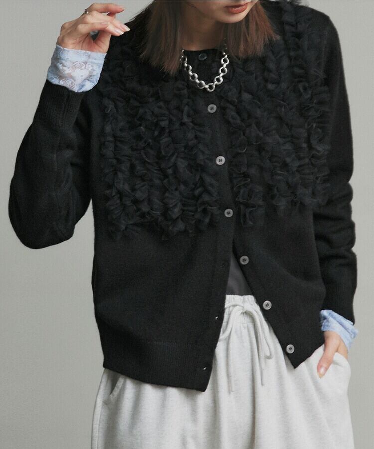 2026年INS 秋冬新作 気質 おしゃれ ニット ネットレースフリル カーディガン