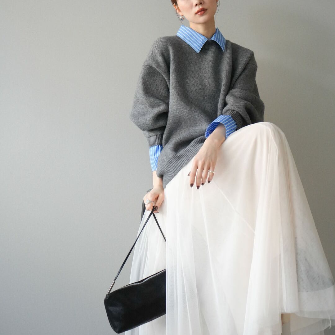 今季マストバイ 気質 ニット プルオーバー+メッシュフレア ロングスカート セットアップ