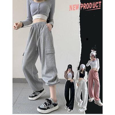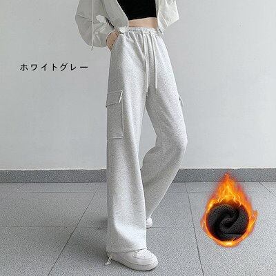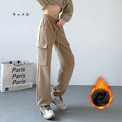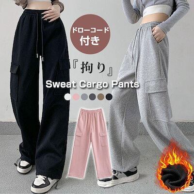 レディース カーゴパンツ スウェット 裏起毛 秋冬 暖かい ゆったり 柔らか ウエストゴム ドローコード ポケット 2WAY リラックス 新入荷 ボトムス