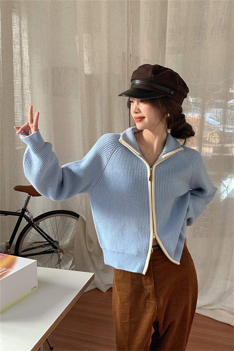 2023春INS★カジュアル レトロ レイジー風 ニット チャック ジャケット