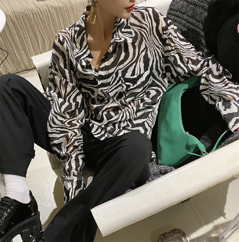 2023春INS★カジュアル 気質 ゆったり ゼブラ柄 長袖 シャツ/ブラウス