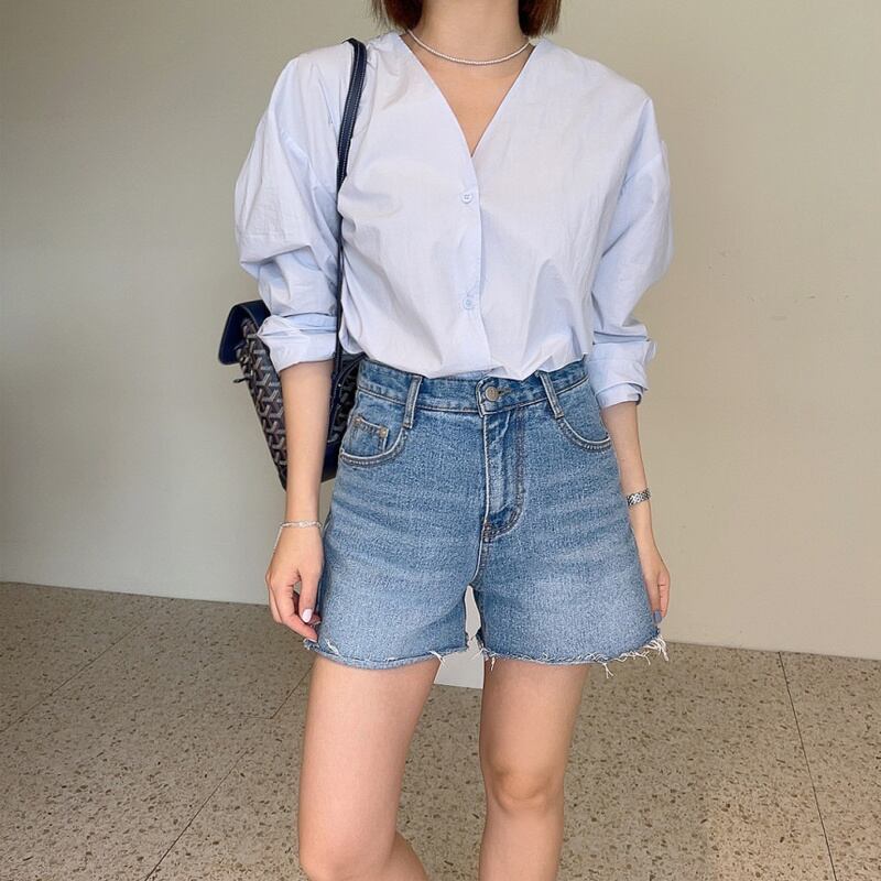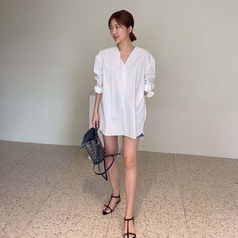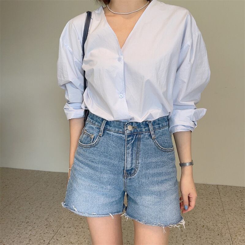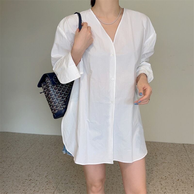 2023春INS★カジュアル 気質 ゆったり 長袖 Vネック 無地 シャツ/ブラウス